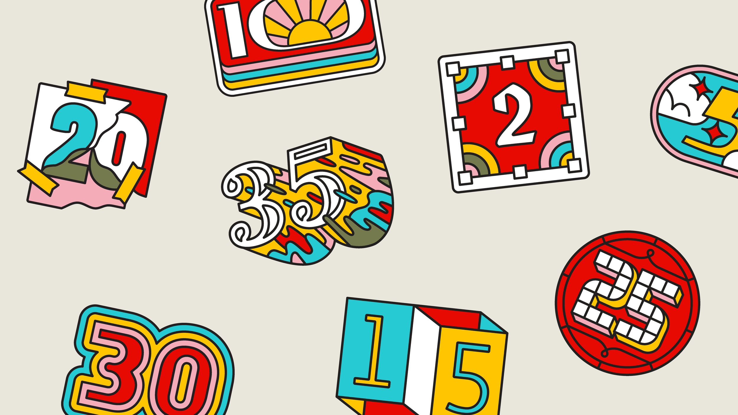 In 2022 Adobe wanted to give out year pins at Adobe Max to celebrate and thank the creative community for using their products for all these years. People could stop by the Creative Park at Max and get a pin for the number of years they’ve been using Adobe. I wanted each pin to feel very different and have a little nod to Adobe in a subtle way.